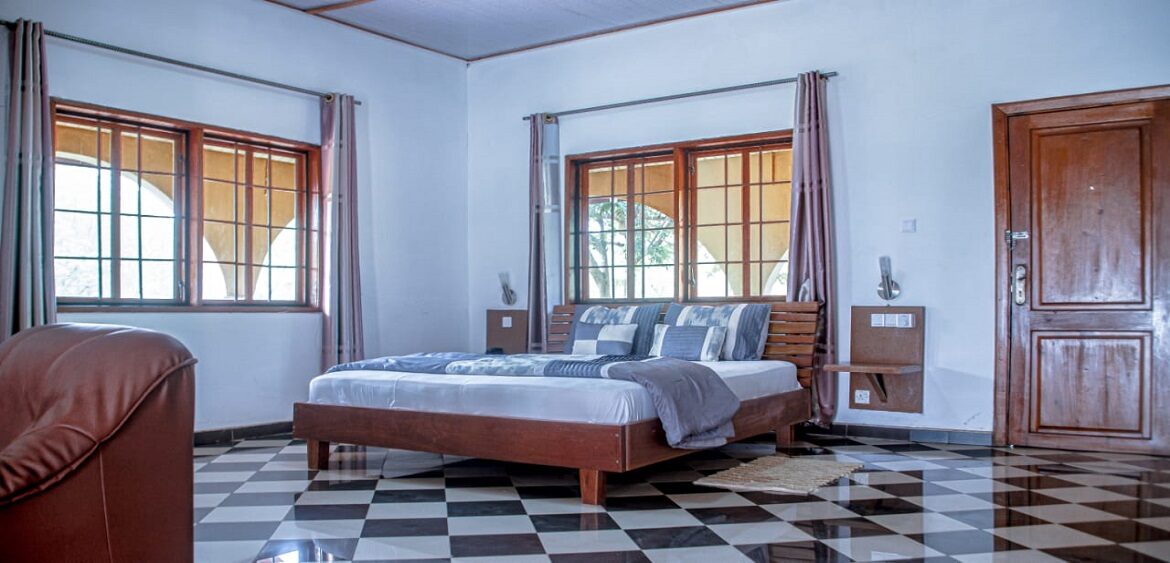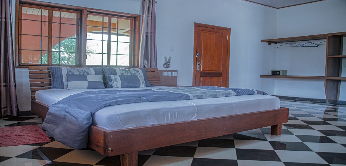1 Executive rooms (1 Executive Room)- Our executive suite has the best view of the Volta lake. The Executive suite is bespoke with a spacious restroom, Queen size bed, Seating area, classical décor and luxurious soft furnishings.